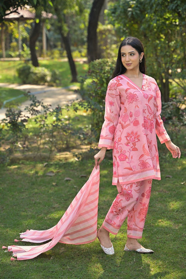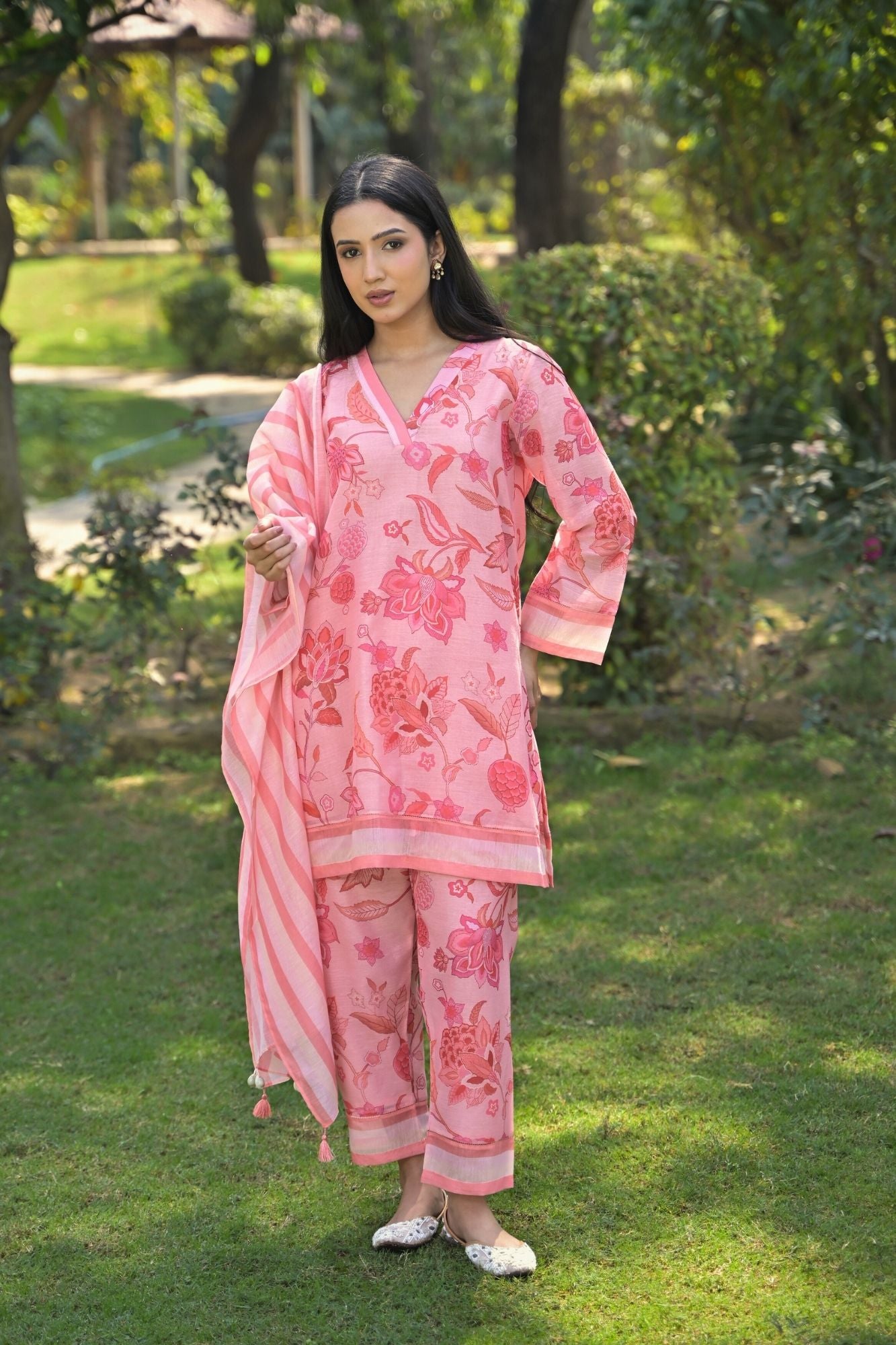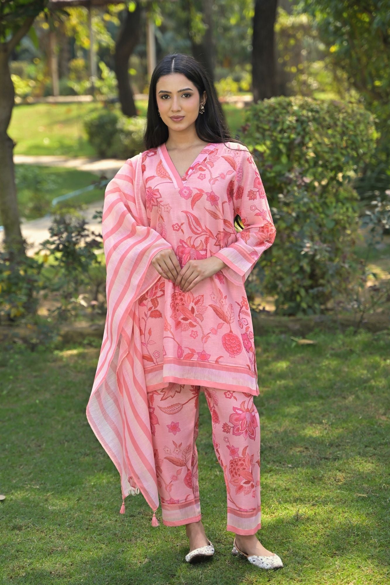 Paired with coordinated straight pants and stole dupatta for a refined look