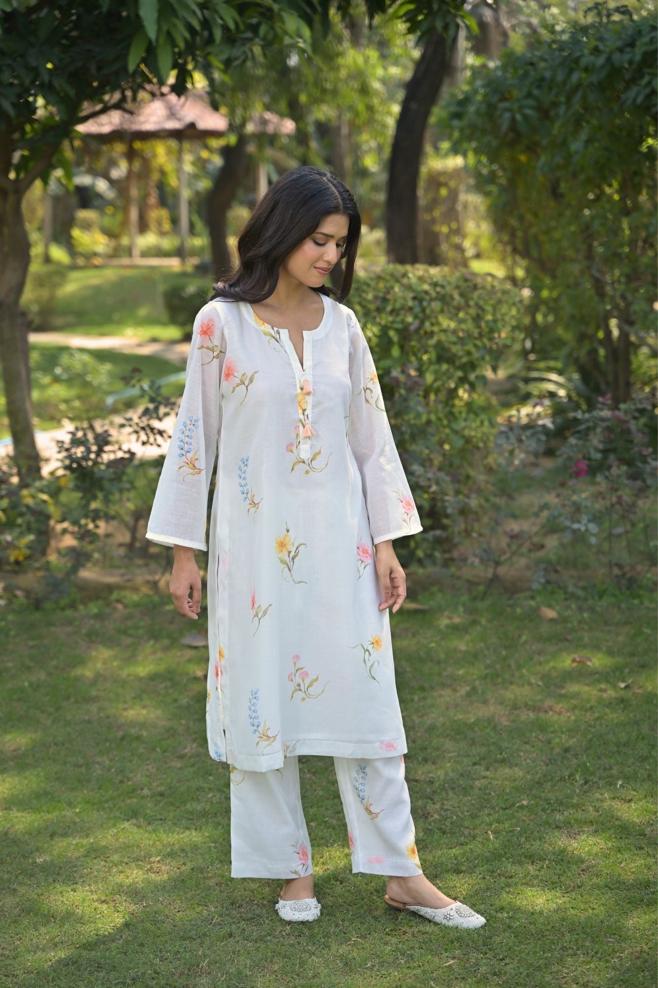 Easy Breezy kurta set handcrafted in premium cotton chanderi and tassles