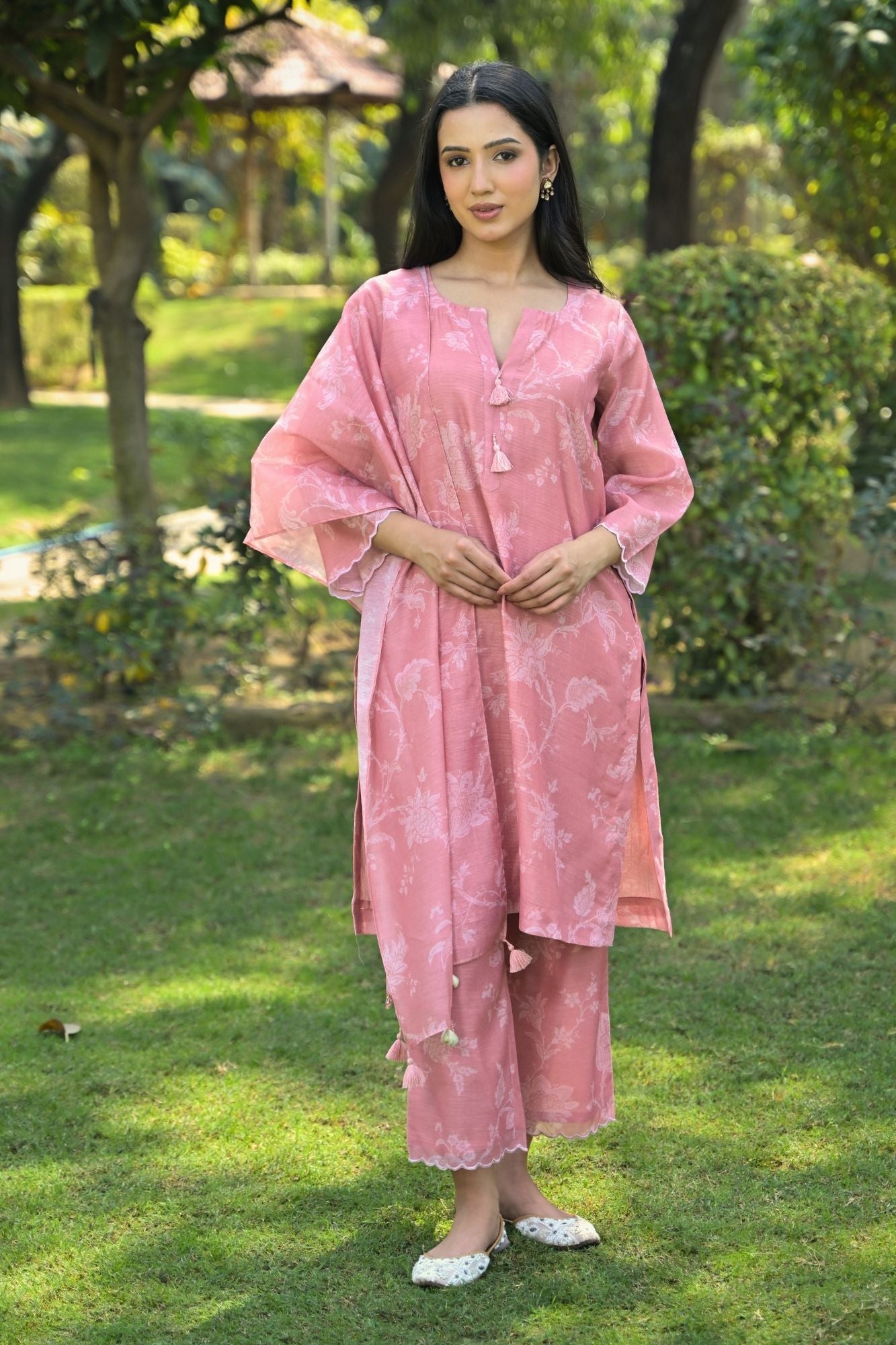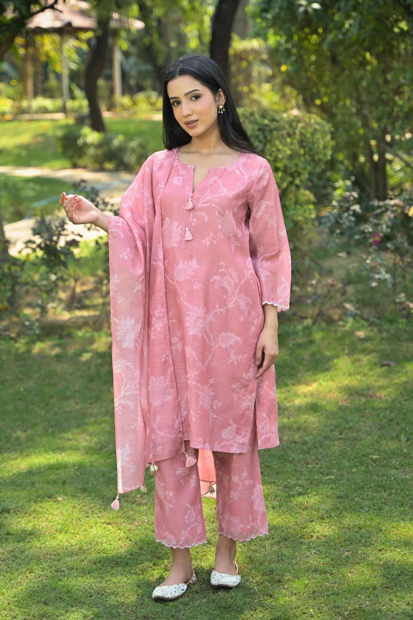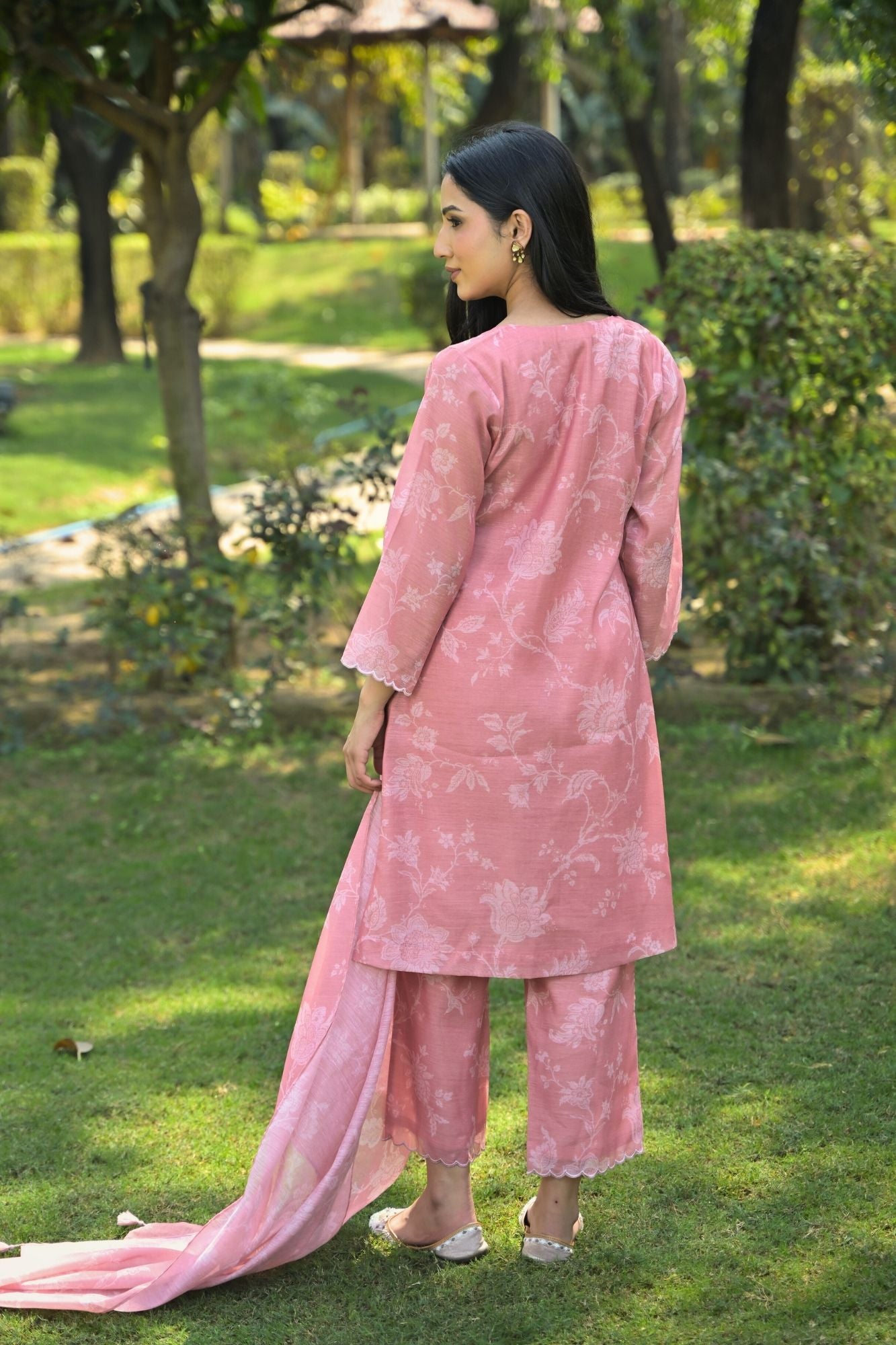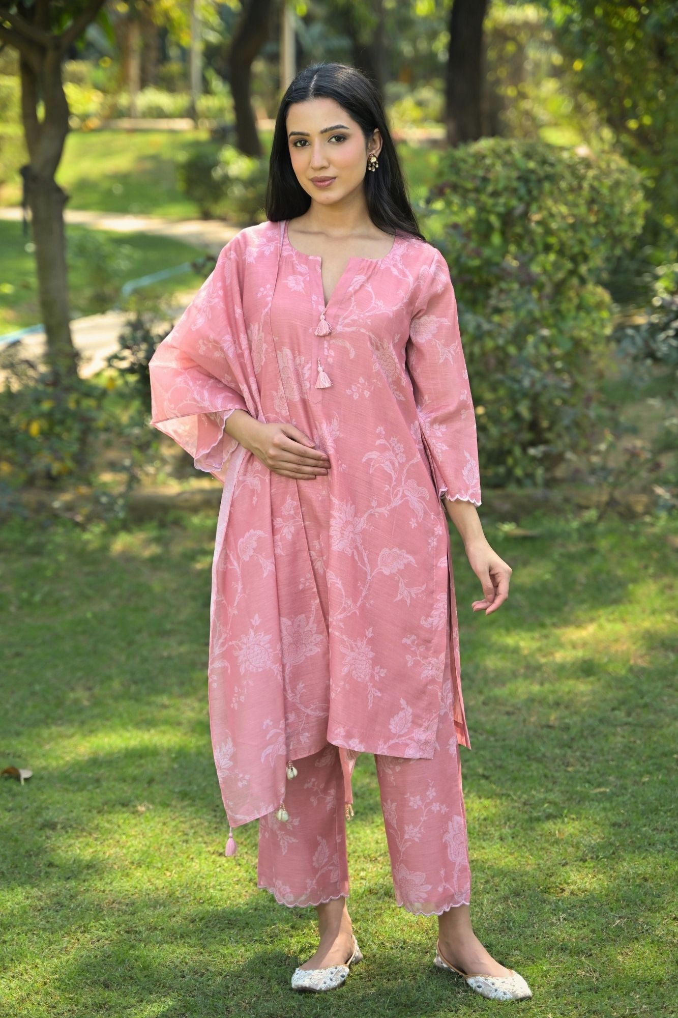Paired with coordinated straight pants and stole dupatta for a refined look