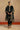 • Paired with straight velvet pants featuring ornate embroidered hems for a regal finish