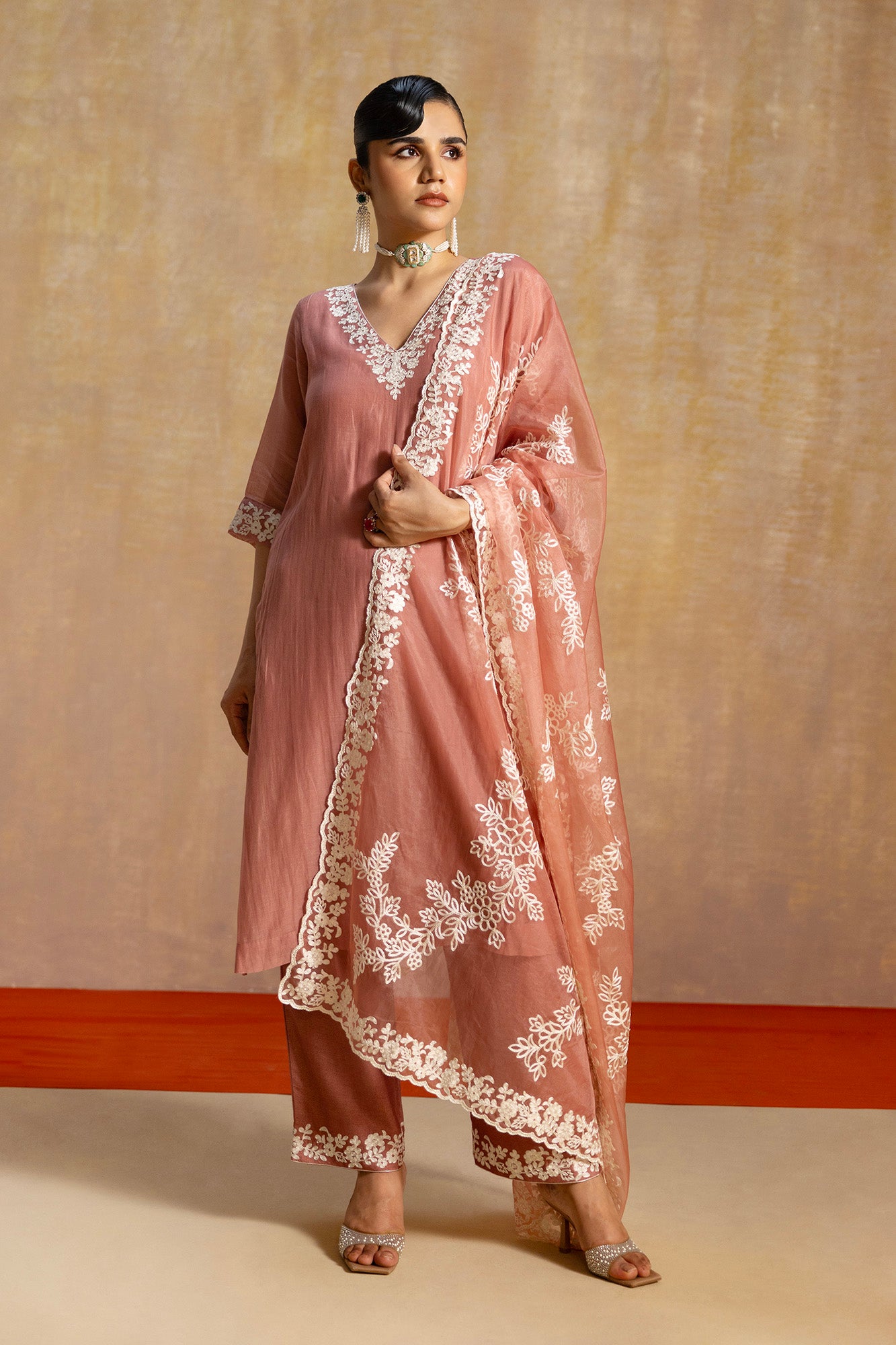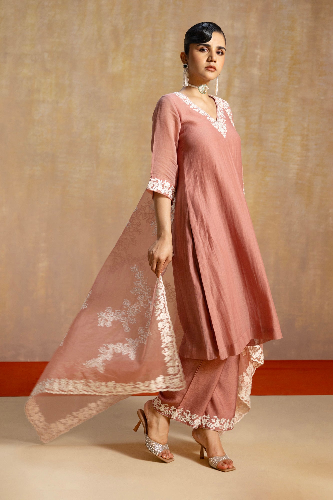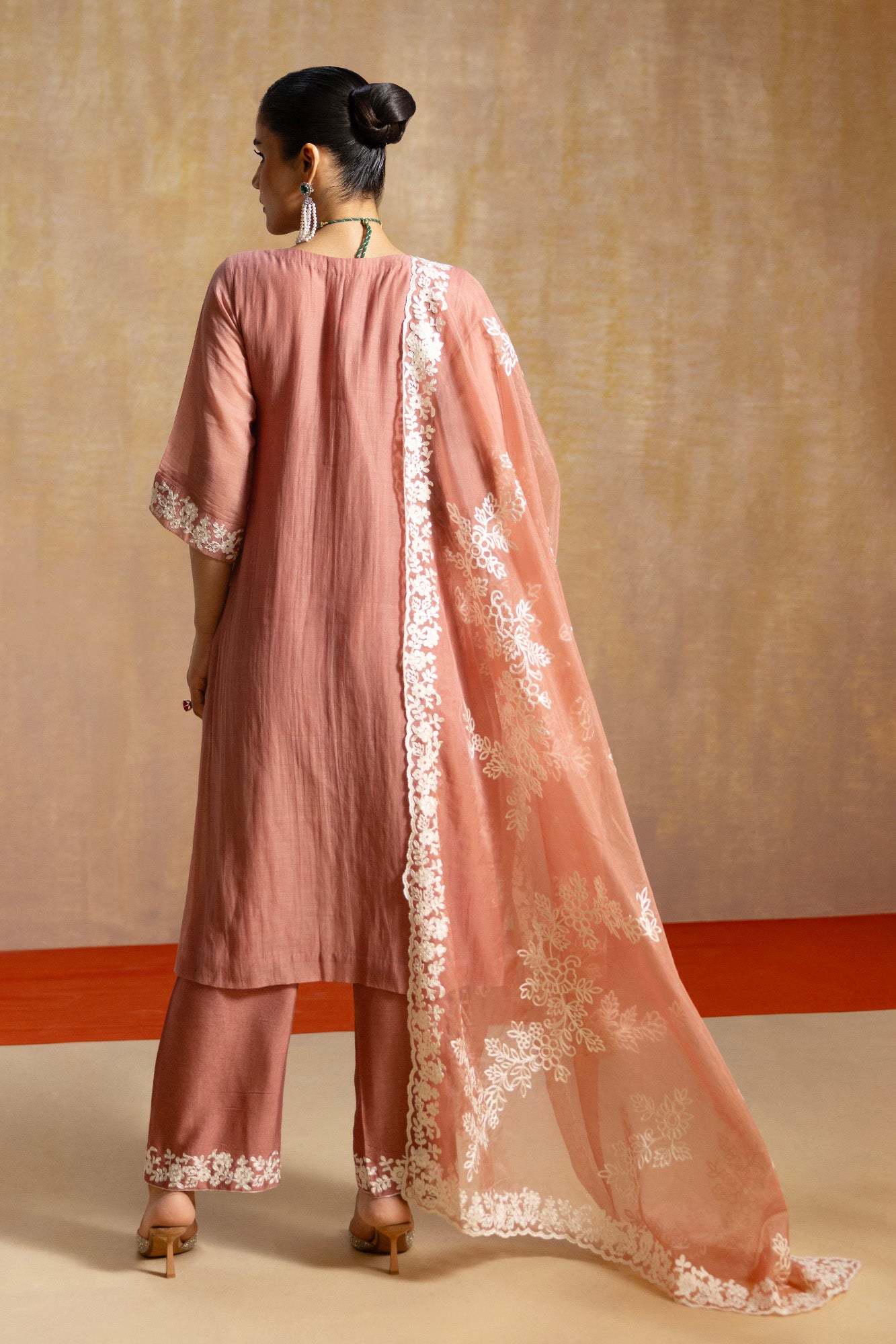 • Enhanced with ivory thread embroidery along the neckline, sleeves, hem, and dupatta border for timeless charm