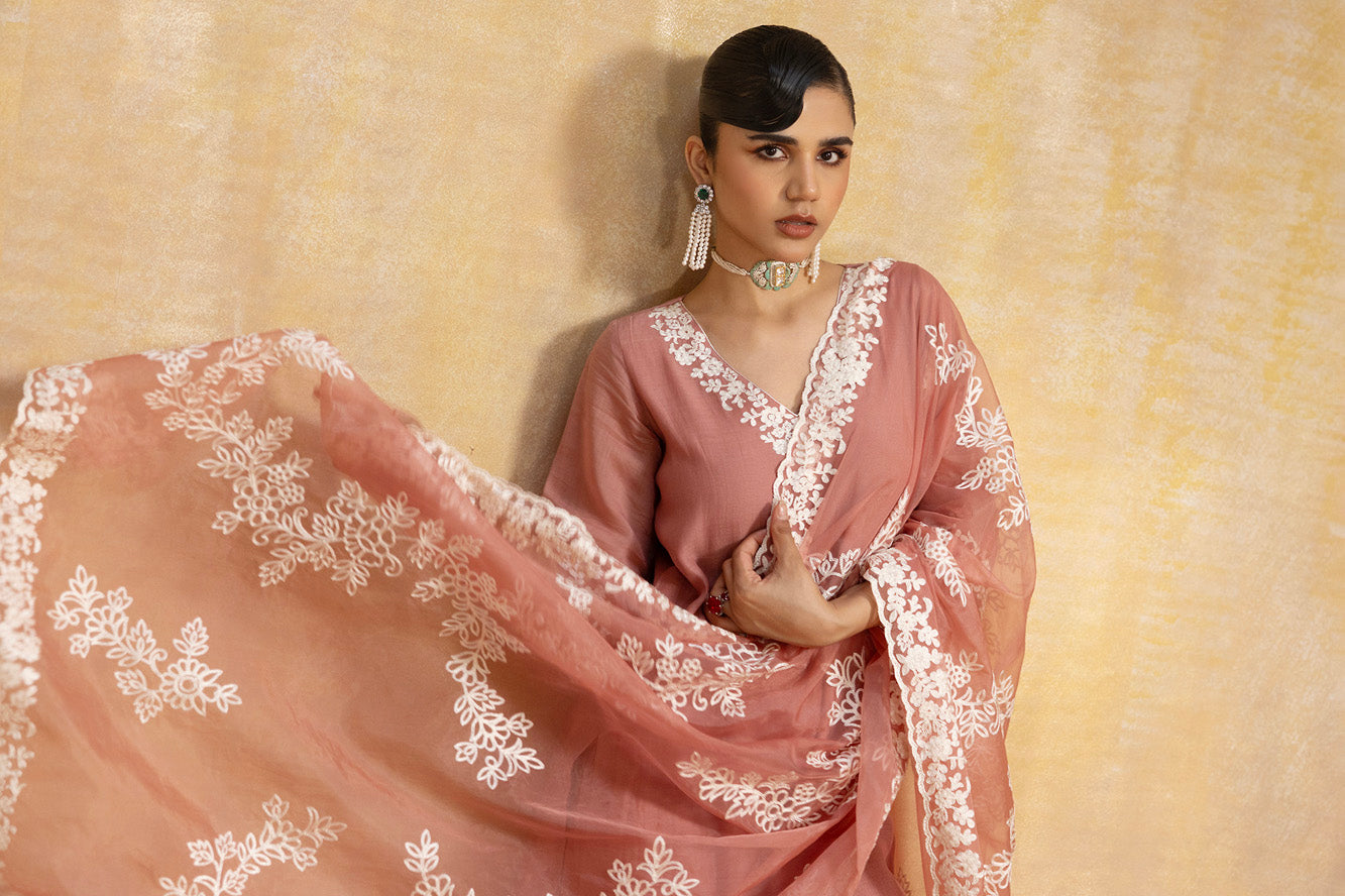 • Completed with a sheer embroidered dupatta showcasing scalloped edging for a refined look