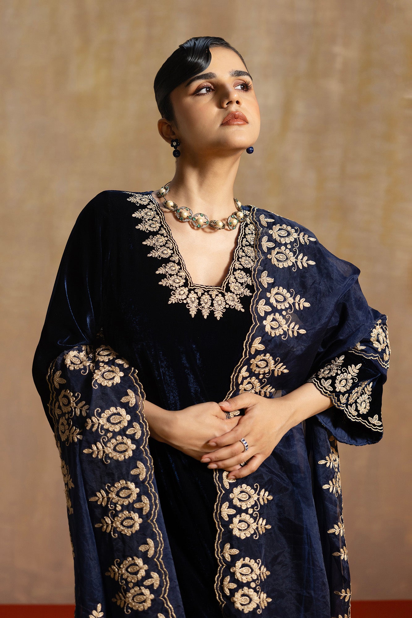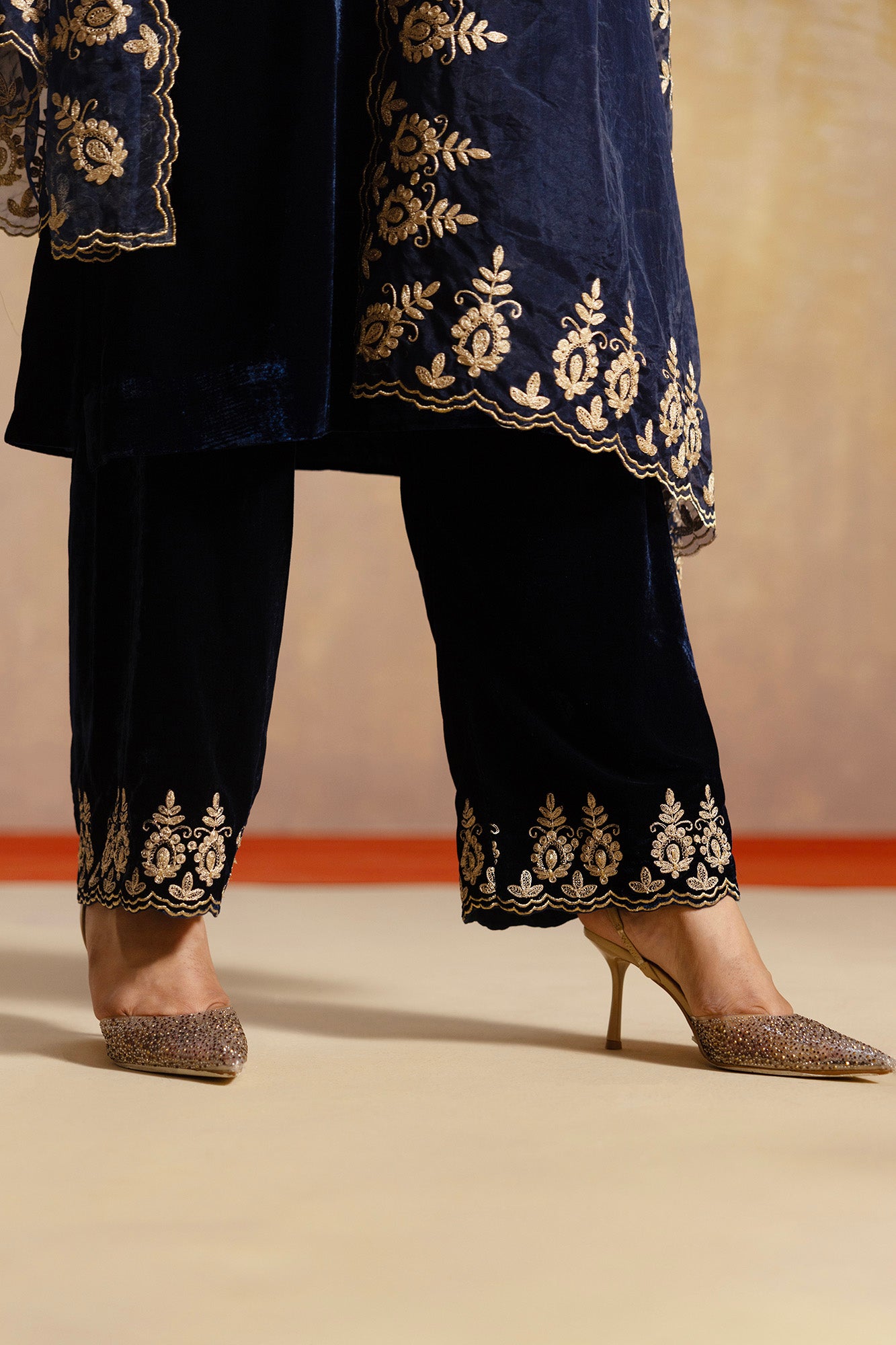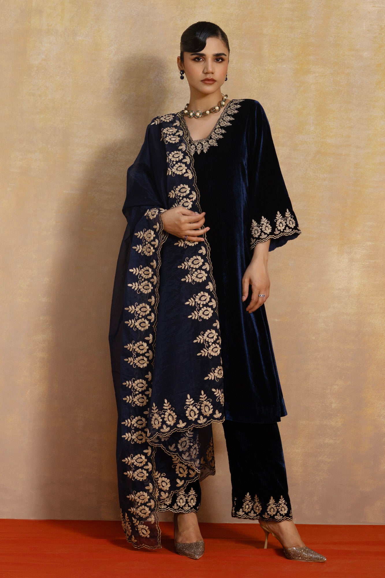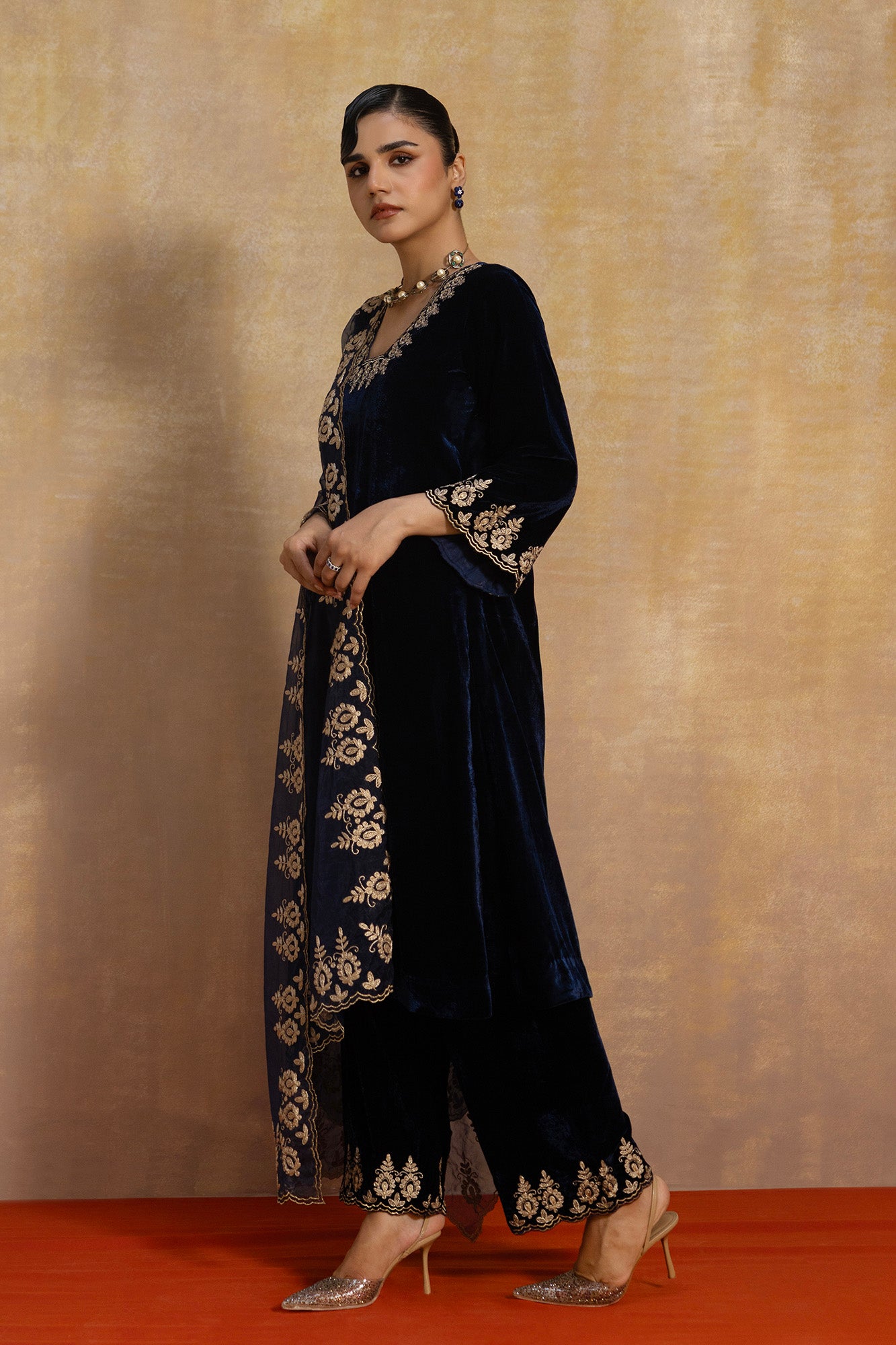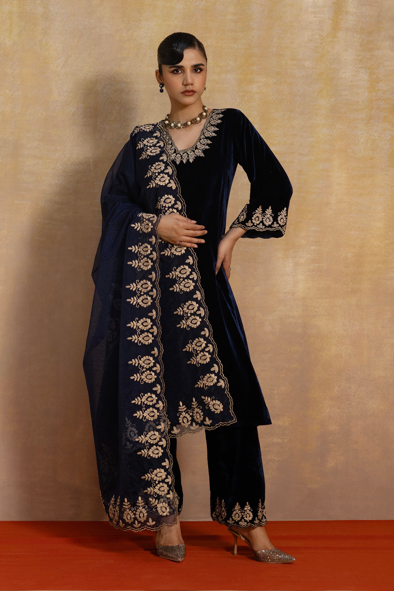 • Paired with matching trousers and a statement embroidered dupatta, making it an heirloom-worthy festive set