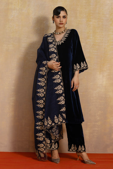 • Luxuriously tailored from Velvet with Cotton Chanderi Dupatta for a rich drape and regal appeal
