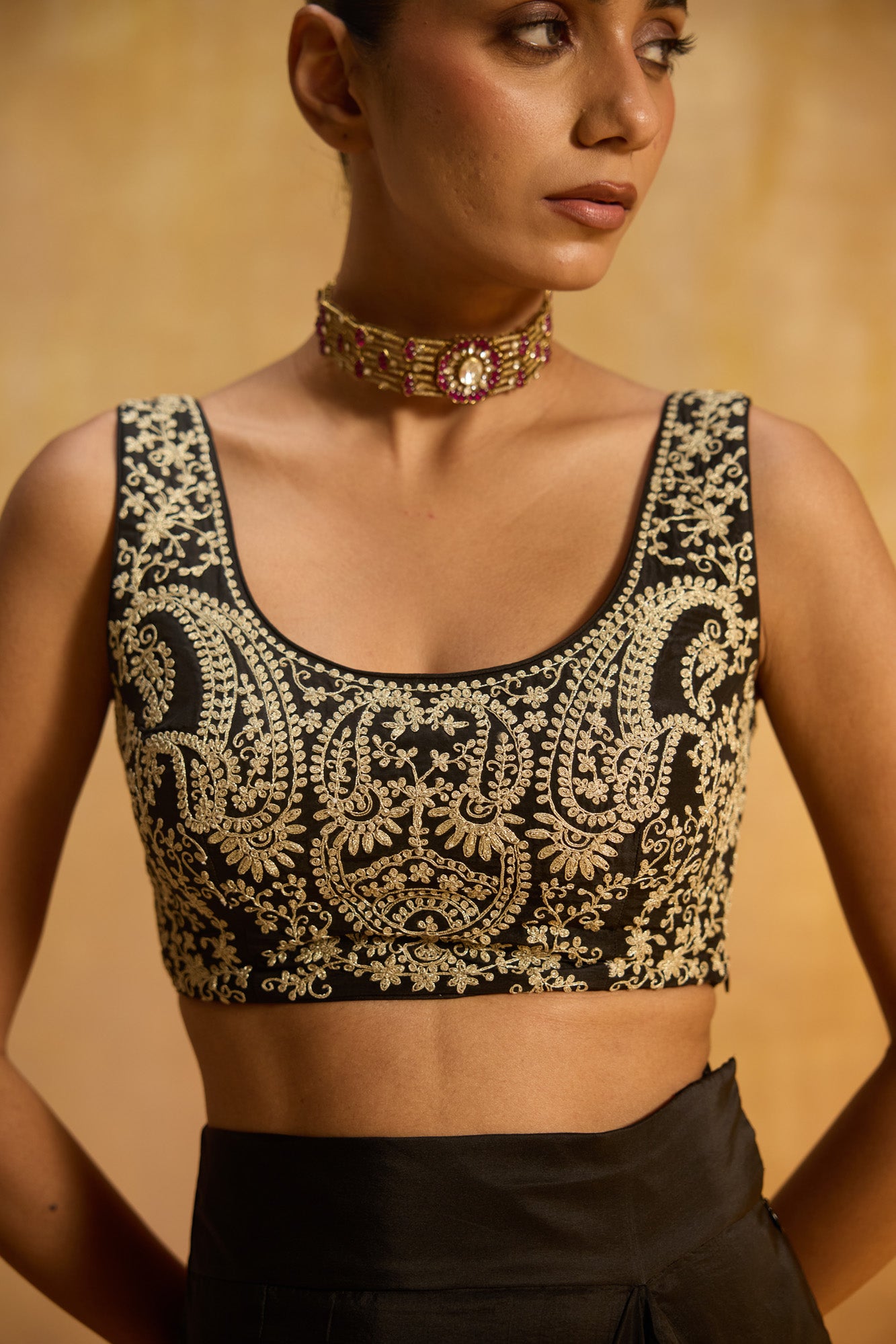 - Featuring an intricately embroidered blouse with a flattering scoop neckline for a statement look
