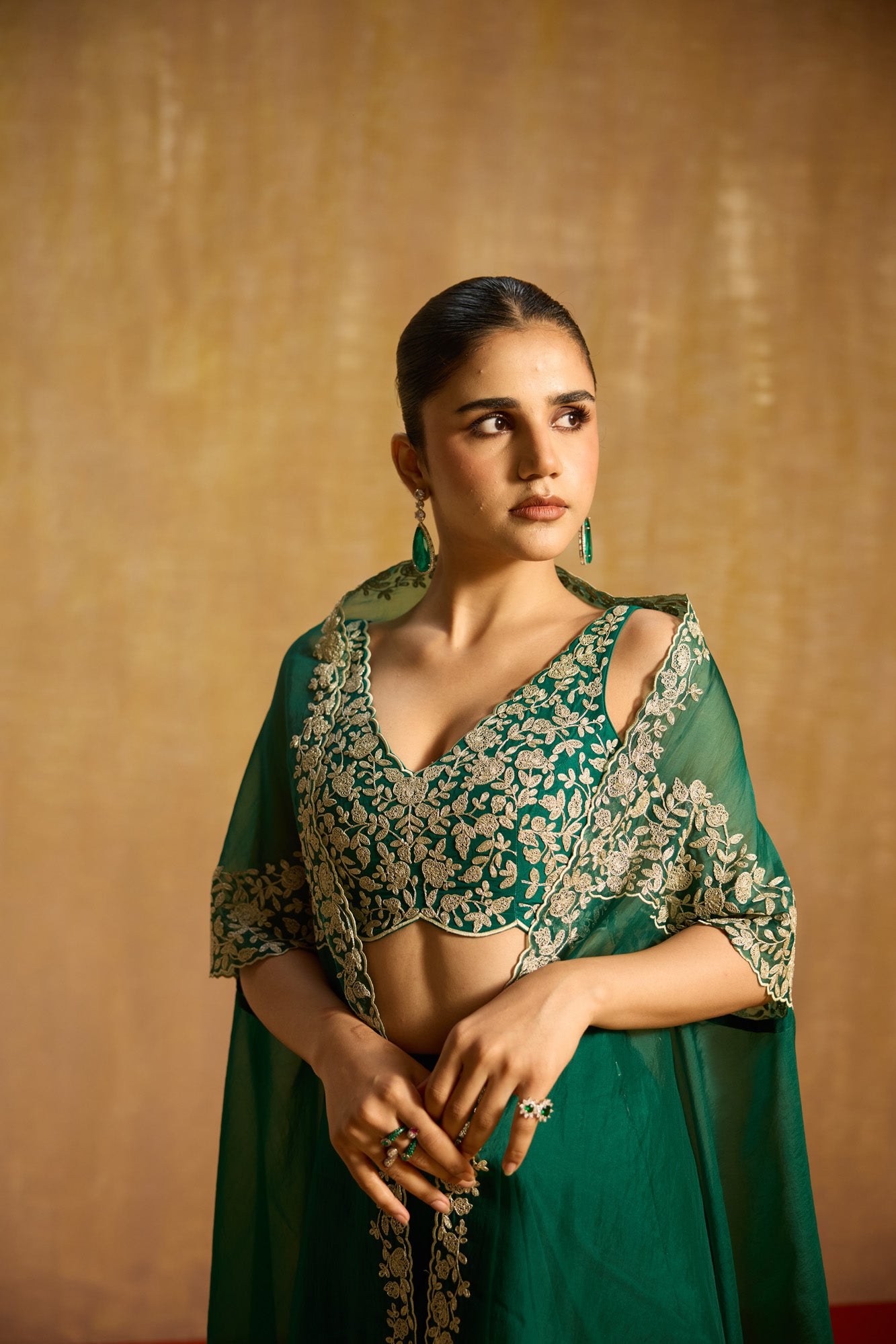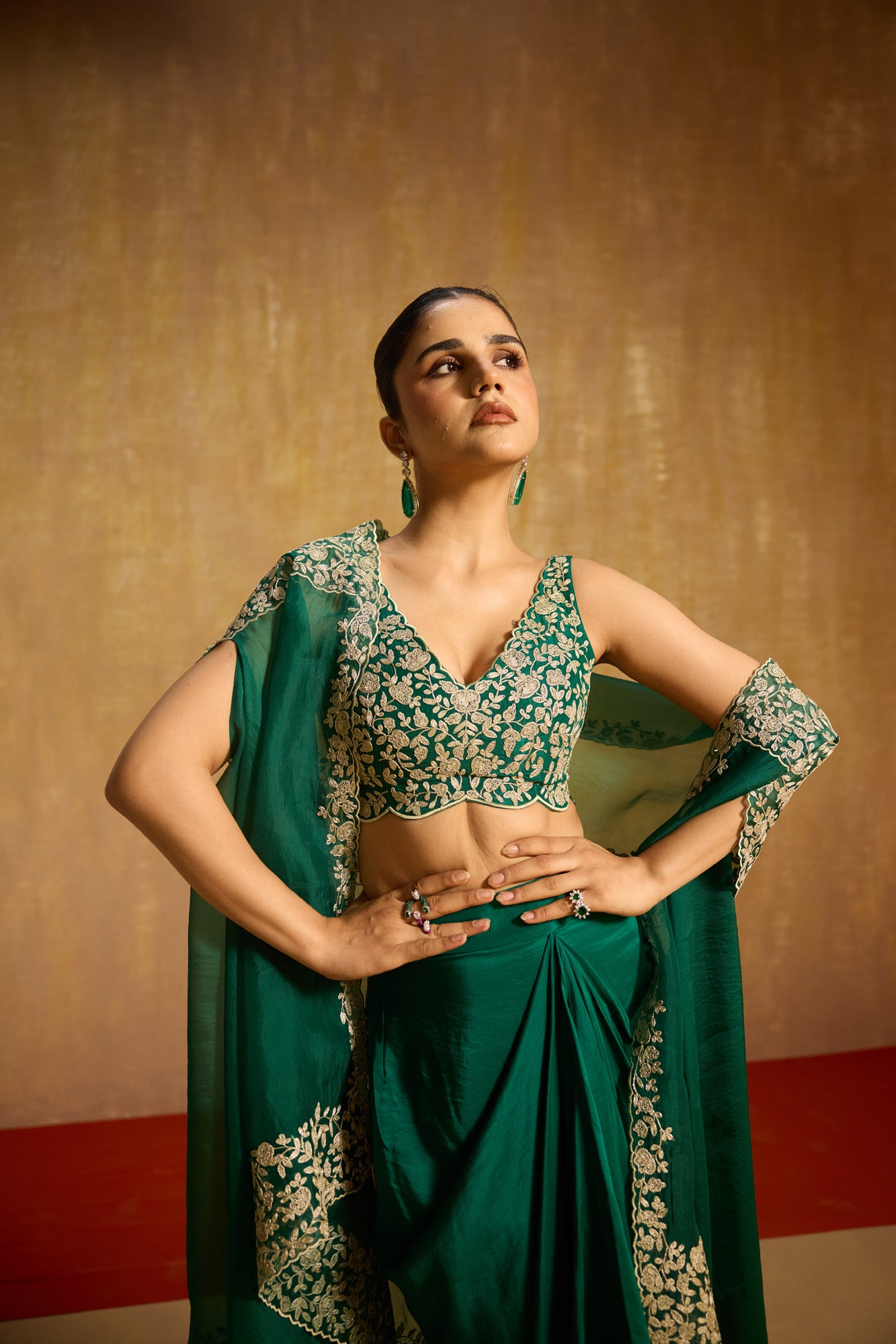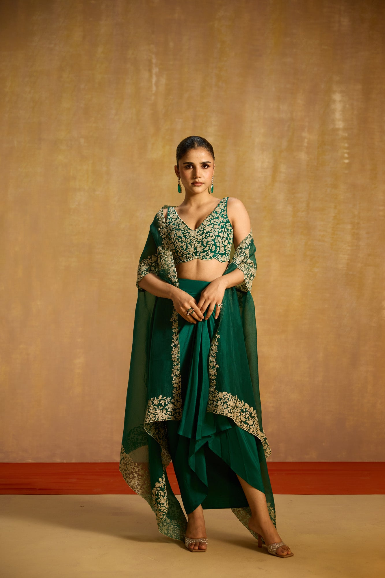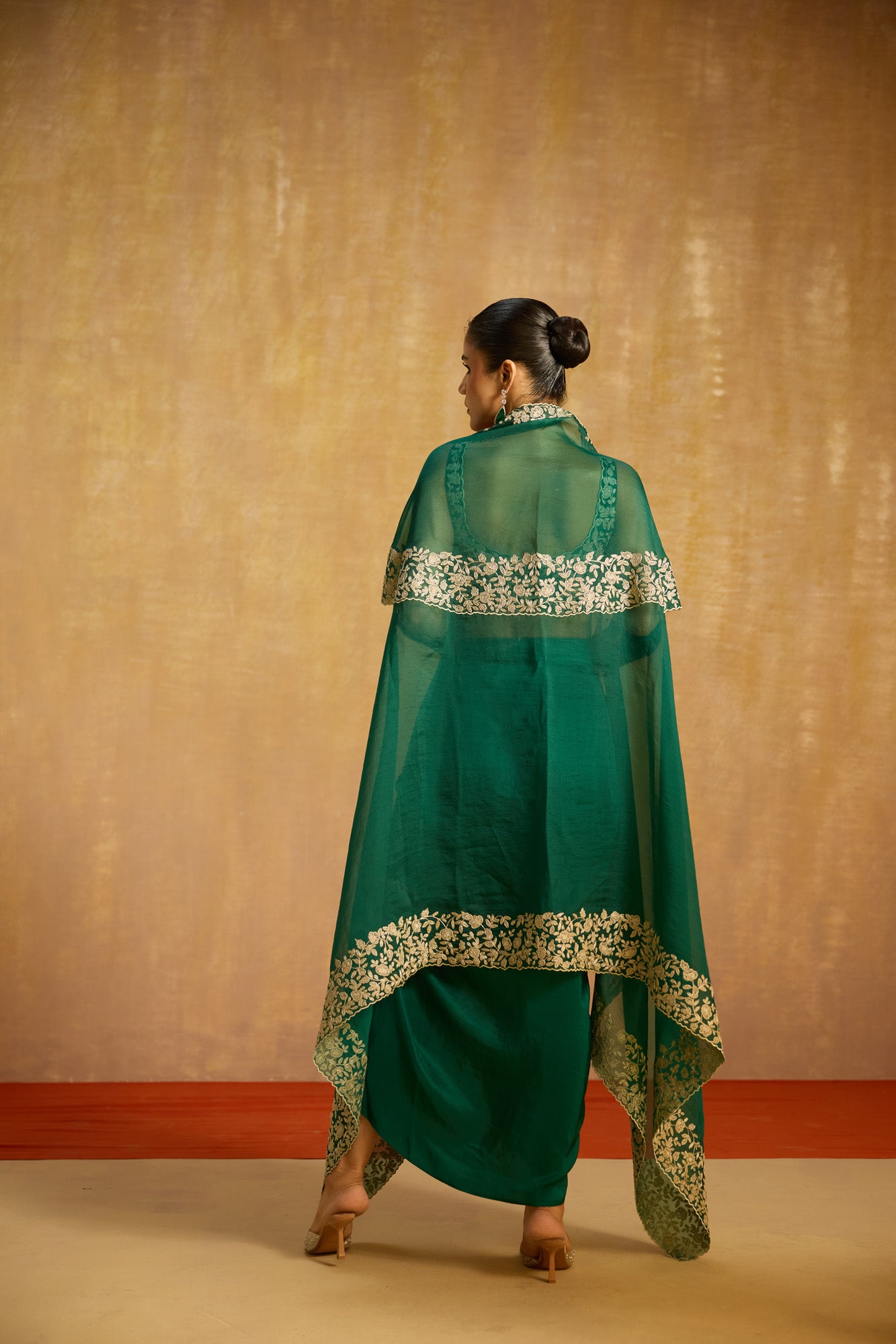 • Highlighted with a matching embroidered cape that adds movement and grandeur to the ensemble